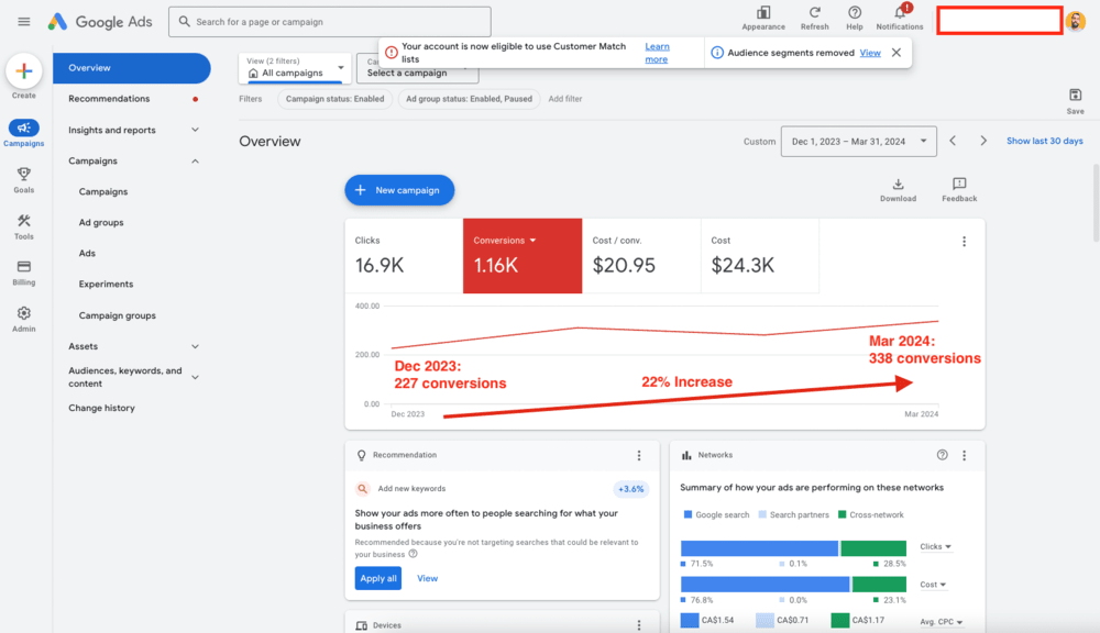 3. Continuous Campaign Optimization: Regularly optimized Google Ads campaigns to maximize performance and return on investment (ROI):